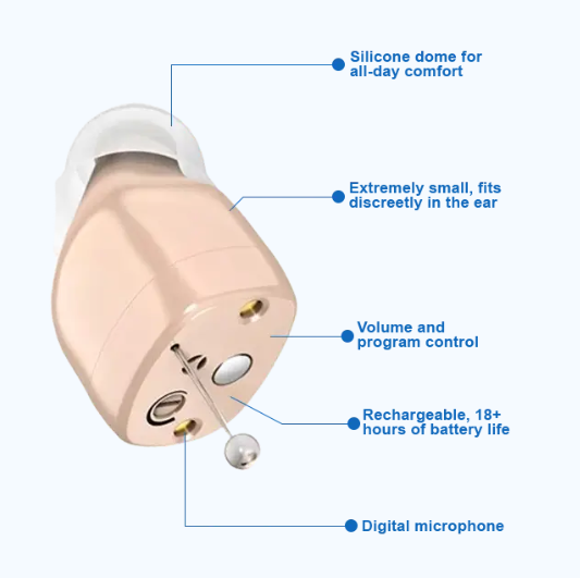 ClearHearing features a compact, in-ear design that’s virtually invisible, so you can wear them confidently without drawing attention.