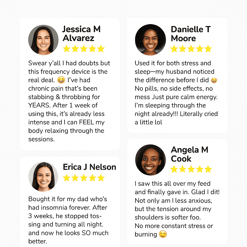 Don't worry about getting it wrong. Your purchase includes our Frequency Healing Guide that shows you exactly which settings to use for any issue – stress, sleep, pain, or focus. This exclusive resource takes all the guesswork out and helps you get maximum benefits right away. You will receive all the bonuses via email and inside the package.